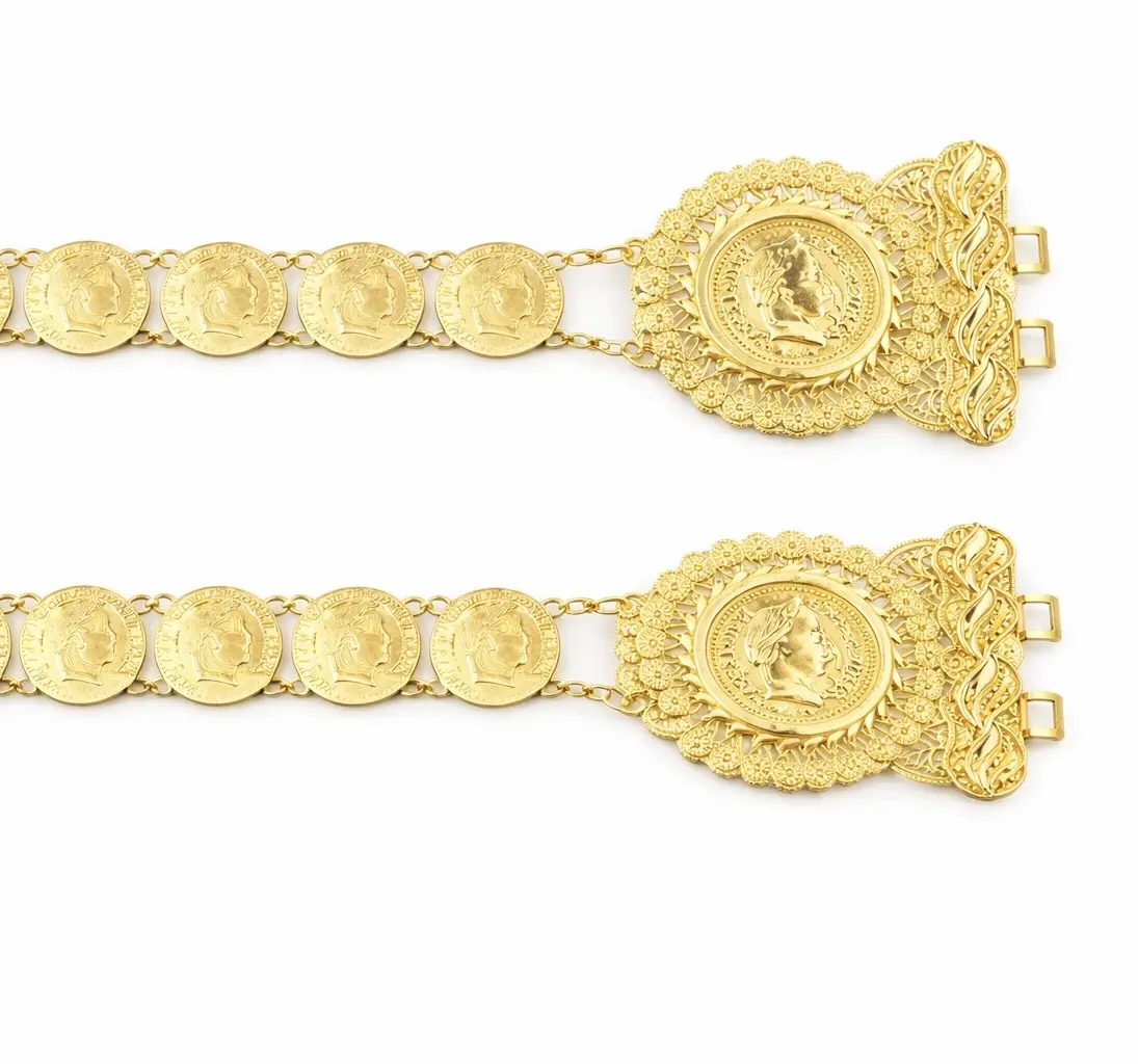 Sublimez vos tenues avec cette ceinture traditionnelle dorée, inspirée des bijoux d’antan et travaillée avec une grande finesse artisanale.