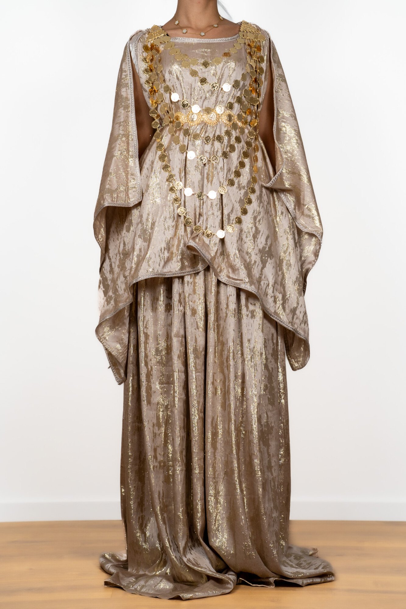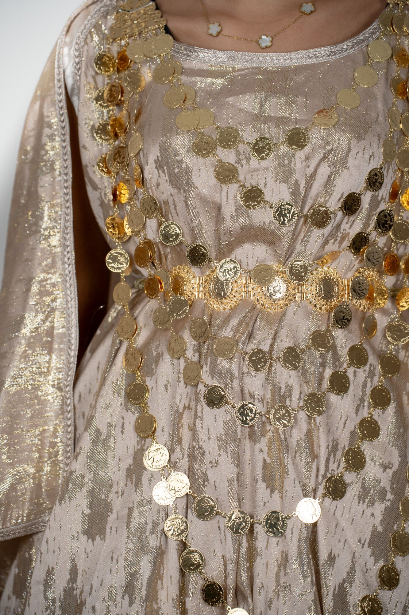 Le modèle Amna est une pièce unique inspirée des traditions chaouies algériennes, confectionnée avec soin dans nos ateliers en Algérie.