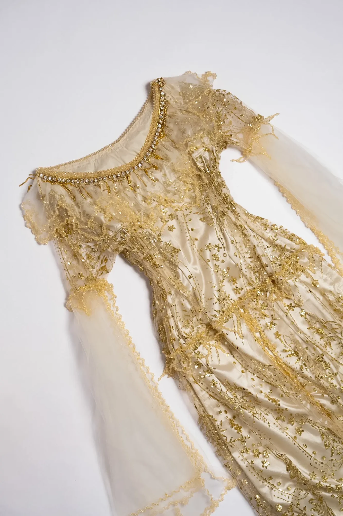 La robe Naïli algérienne est une pièce emblématique du patrimoine traditionnel, inspirée de la tribu des Ouled Naïl et revisitée avec élégance par Mydresss.